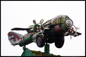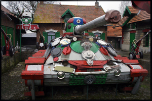d'énormes girouettes qu'il installe sur les toitures de ses