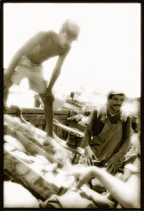 Cette série photo est prise dansun petit port de pêche .à quelques kilomètres au sud de Rabat, Maroc. Nous étions allé acheter du poisson tout juste sorti de l'eau, en fin de matinée. Le temps était superbe, c'est- à -dire très chaud avec une légère brise et un soleil plutôt énervé. Il m'a donné du fil à retordre car je n'avais que du film hp5 d'ilford.dans cette fournaise on avait l'impression que tout était blanc! Pour le tirage des photos j'ai essayé de m'approcher de cette sensation que l'on éprouve parfois lorsqu'on est obligé de froncer les yeux pour entrevoir nôtre environnement.