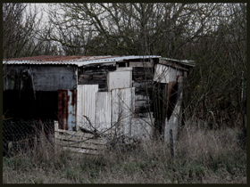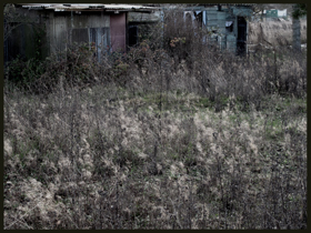 En marge de la cité, des jardins ouvriers à l'abandon,la végétation sauvage reprend ses droits et des sauvages par bêtise vandalisent ces cabanes...on n'y entend plus pousser les carottes,il ne restent de ce passé glorieux que le chant des oiseaux et le souffle du vent....